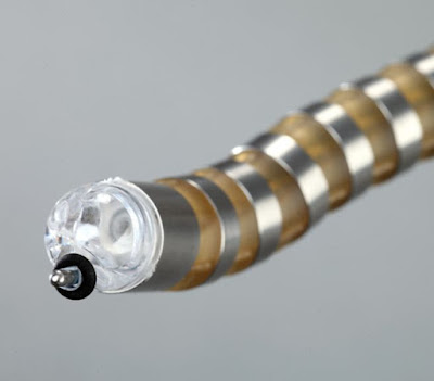 Como funciona: O cirurgião da serpente de Howie Choset do engenheiro da Universidade Carnegie Mellon tem apenas um centímetro de comprimento e pesa menos de três onças, mas está empacotado com motores e articulações que lhe conferem 102 graus de liberdade, permitindo que ele se enrole hábilmente em torno de órgãos e vermes através dos intestinos, brônquicos tubos e outras vias utilizadas durante a cirurgia endoscópica. Sua flexibilidade sem precedentes, junto com uma pequena cabeça de câmera, facilita a direção remota usando um joystick. um "fazer um quarto de polegada girar um sentido, mover uma polegada, fazer um quarto de polegada virar de outra forma, e boom! um ???? você está atrás do coração, um ???? diz Choset, o co-fundador da Cardiorobotics, Inc. Em fevereiro, o robô realizou um procedimento de diagnóstico em um paciente que, de outra forma, teria exigido que um cirurgião dividisse o esterno, o que levaria alguns meses para a recuperação.